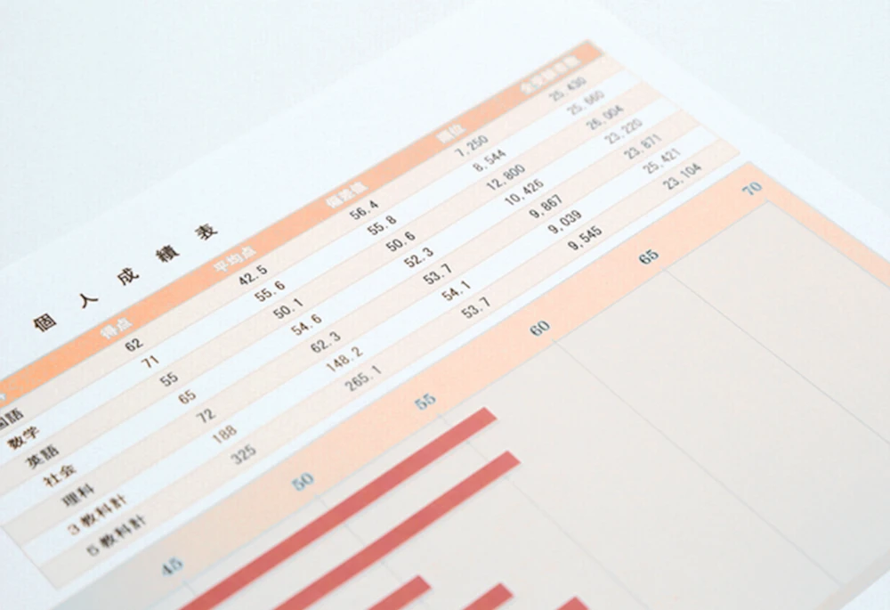 スクール内検定や公開模試など試験結果や偏差値を管理できます。